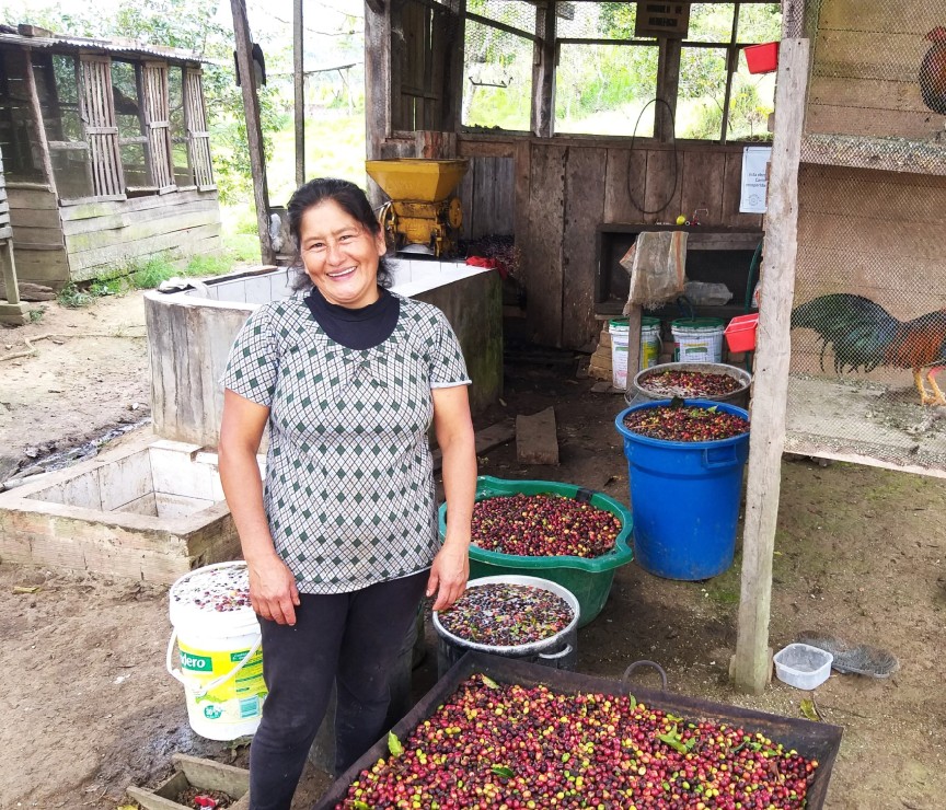 La muestra se divide en diferentes cantidades (350g, 300g, 250g) y se prepara para ser enviada al laboratorio, tostada o recolectada por el socio.